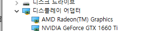 장치관리자에서는 아래와 같이 그래픽 장치가 2개로 나오는데, 이상하게 모니터 1은 인식하지 못함